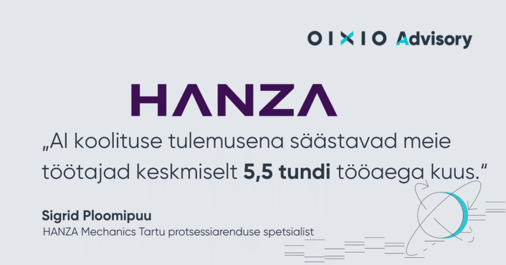 2025. aasta alguses viis OIXIO Advisory HANZA Tartu ja Narva tehaste töötajatele läbi AI praktilise koolituse ja kasutuslugude töötoa, mille tulemusena säästavad töötajad nüüd keskmiselt 5,5 tundi tööaega kuus. Projekti jätkuna valmisid AI õppevideod ka teistele HANZA tehastele üle maailma, aidates tugevdada AI kasutamise oskusi terves kontsernis.
