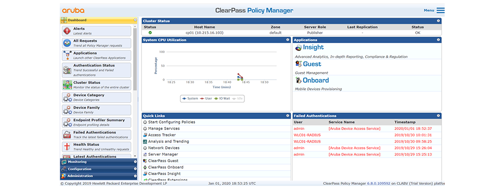 - Aruba Clearpass: võrgupõhine platvorm, mida kasutatakse laialdaselt ligipääsu haldamiseks ja turvalisuseks. See on eriti kasulik ettevõtetes, kus on palju erinevaid seadmeid, sealhulgas era- ja äriseadmeid, asjade interneti (IoT) seadmeid ja BYOD (Bring Your Own Device) stsenaariume. ClearPassi peamised funktsioonid on seadmete identifitseerimine ja haldamine, tsentraliseeritud turvapoliitika, seadmete seire.