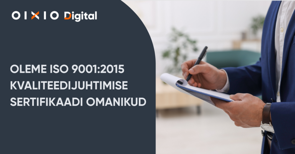Meil on hea meel jagada olulist verstaposti – OIXIO Digital on ametlikult omandanud ISO 9001:2015 kvaliteedijuhtimise sertifikaadi. Tegemist ei ole pelgalt rahvusvaheliselt tunnustatud märgisega, vaid praktilise ja igapäevast väärtust loova juhtimissüsteemiga, mis toetab meie eesmärki pakkuda klientidele järjepidevalt kõrgetasemelisi teenuseid.