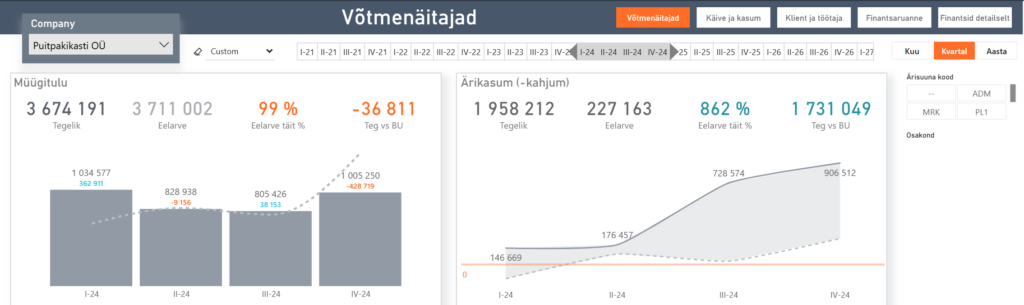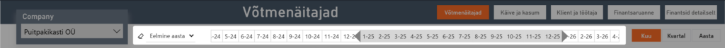 - Paindlik ajagranulaarsus: ajaühiku (päev/nädal/kuu/kvartal/aasta) vahetamine vaid ühe klikiga, ilma tüütu navigeerimiseta erinevate visuaalide vahel