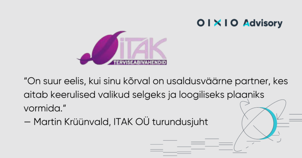 „Siinkohal oli ITAK-ile palju abi OIXIO Advisory suurtest kogemustest ja koos juhtivkonsultant Indrek Sabuliga võtsime ITAKi äriprotsessid pulkadeks lahti. Indreku tugevus on oskus ühendada äri loogika digimaailma võimalustega – ta süüvis detailidesse ja aitas meil näha lahendusi, millele me ise tulnudki,“ toob esile Martin.
