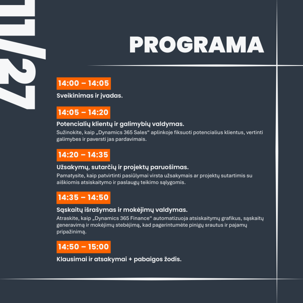 - Formatas: online vebinaras + Q&A sesija;